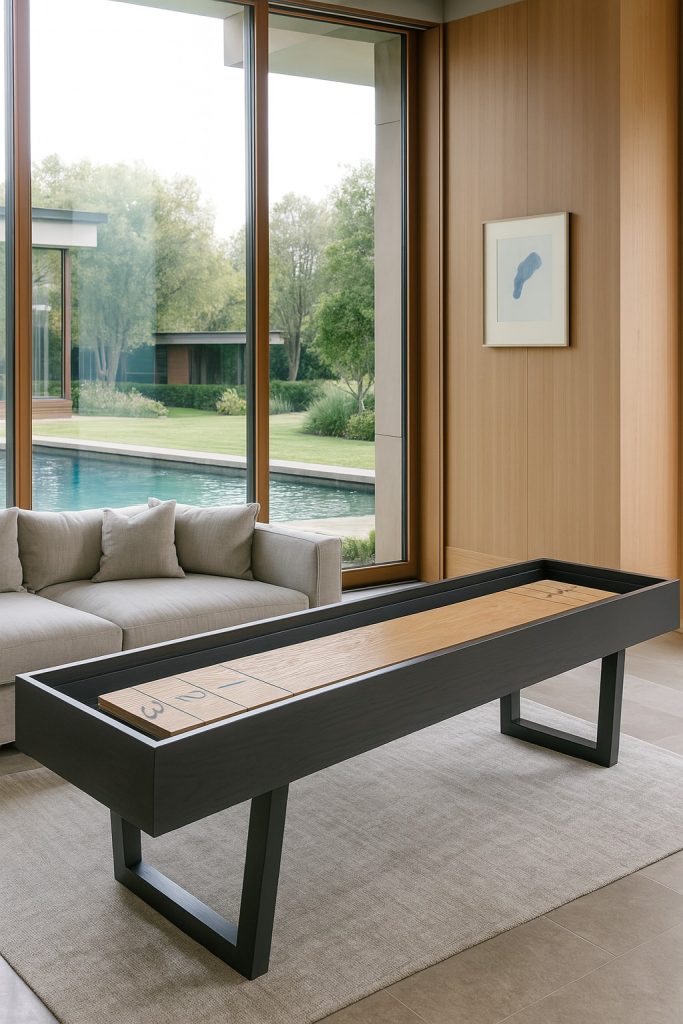 Shuffleboard oynarken şıklığından ödün vermek istemeyenler için tasarlanmış olan siyah özel tasarım shuffleboard ‘Black Design’, yüksek oyun performansı ve göz kamaştıran krom oyuncuları ile sizleri beklemekte. .